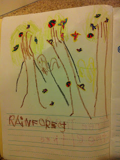 For the tangible things that she made, she kept those in a binder made up of a science journal, a writing journal, and an alphabetically tabbed area where she was able to decide on her own filing method. For example, she may have put a moon worksheet under "m" for moon, or under "s" for space. She was able to file it in whatever way made sense to her.